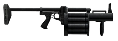 Lançador de granadas militar de disparo múltiplo. Dispara granadas de fragmentação de 40 mm com alta precisão.