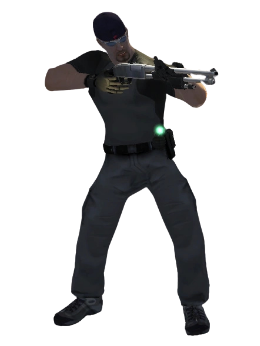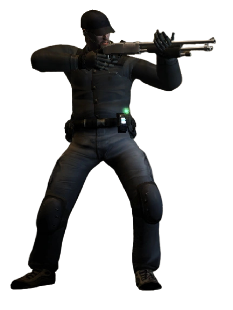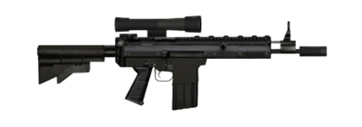 Espingarda de correção de dois canos longos, com recuo de câmara de carga. Dispara uma nuvem de projéteis que causa grande dano a curta distância, mas perde eficácia com a distância. Carregador de 25 cartuchos, acumulável até 40. Um único tiro de perto pode eliminar os inimigos.