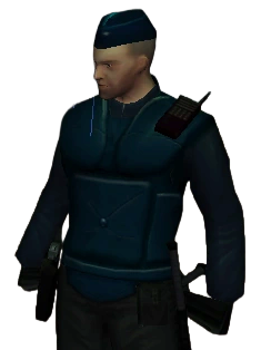 Polícia militar francesa que só reage se Lara for vista ou descender escadas; pode ser evitada com furtividade.