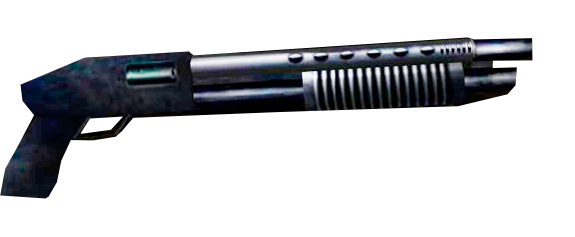 Escopeta de ação por bombeio calibre 12. Combate próximo, 6 disparos, recarga lenta. A efetividade a curto ou médio alcance depende de se utilizarem projéteis padrão ou cartuchos de chumbos.